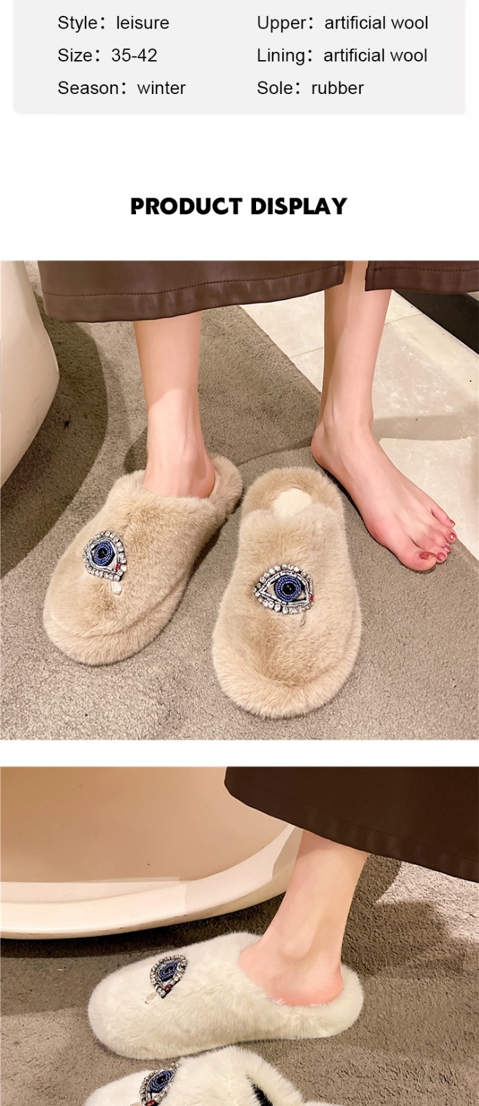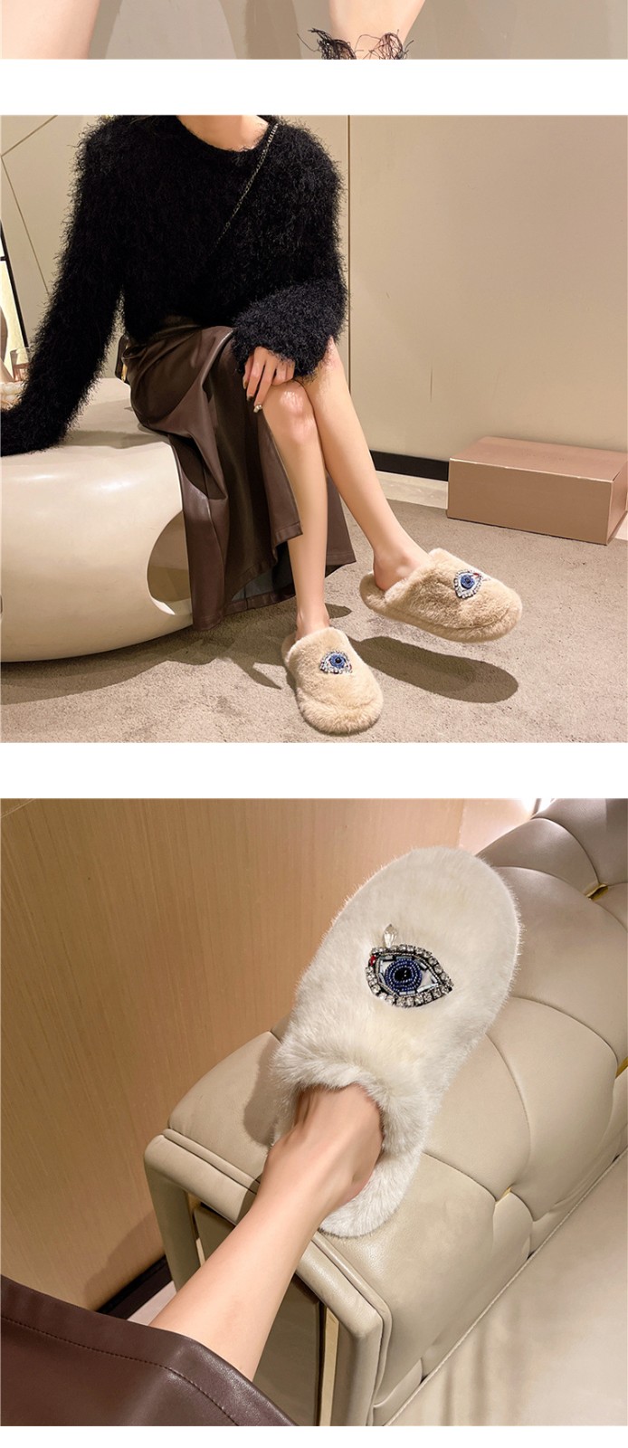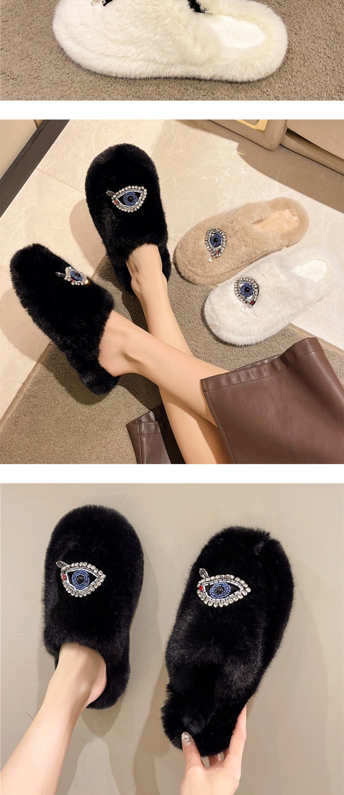 2023 winter new fashion closed toe warm soft soled slippers ladies home casual custom fluffy shoes white slippers