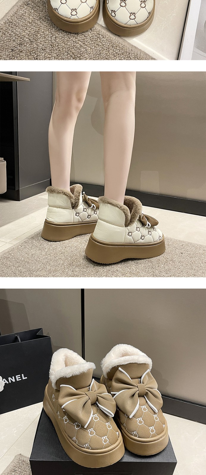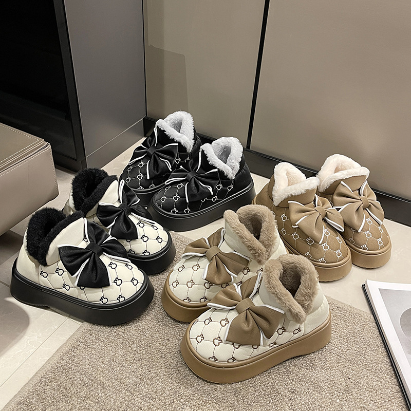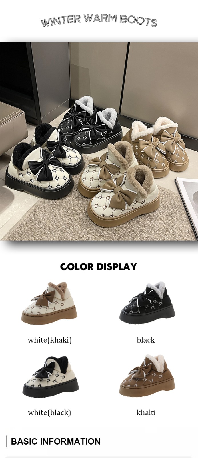 Stylish warm bow boots Winter thick-soled outdoor elegant women's fuzzy boots leather loafer shoes for men