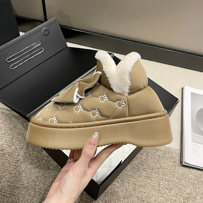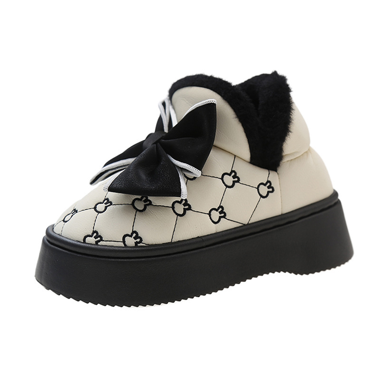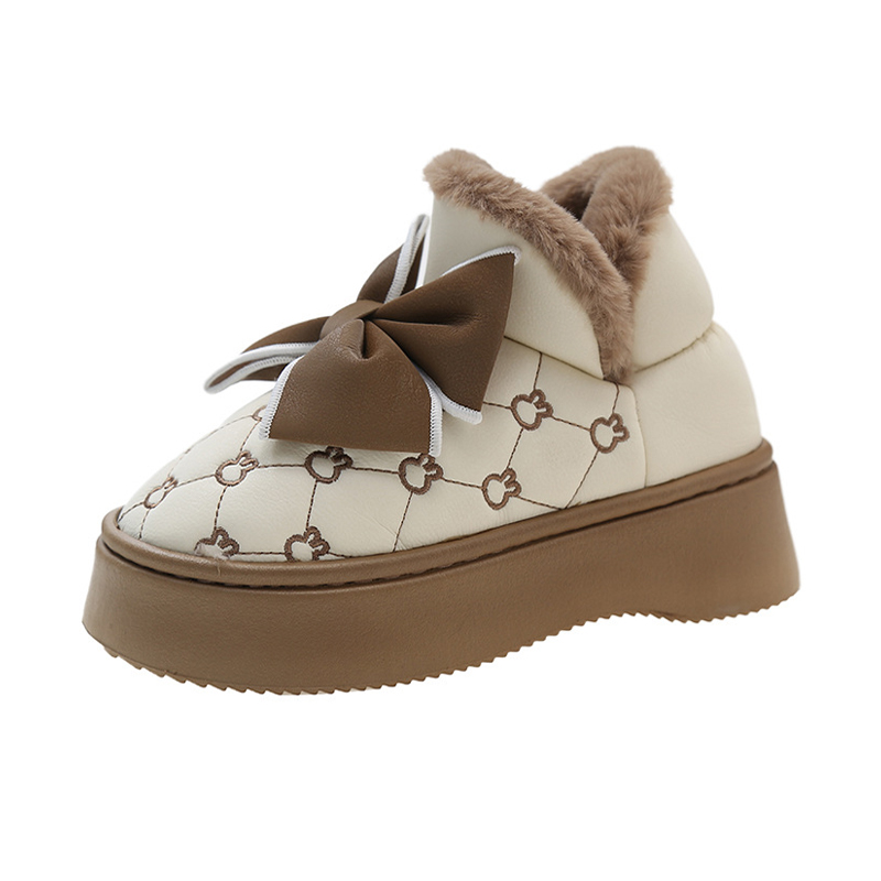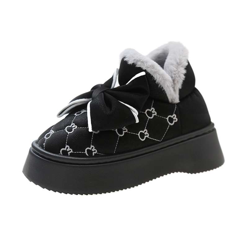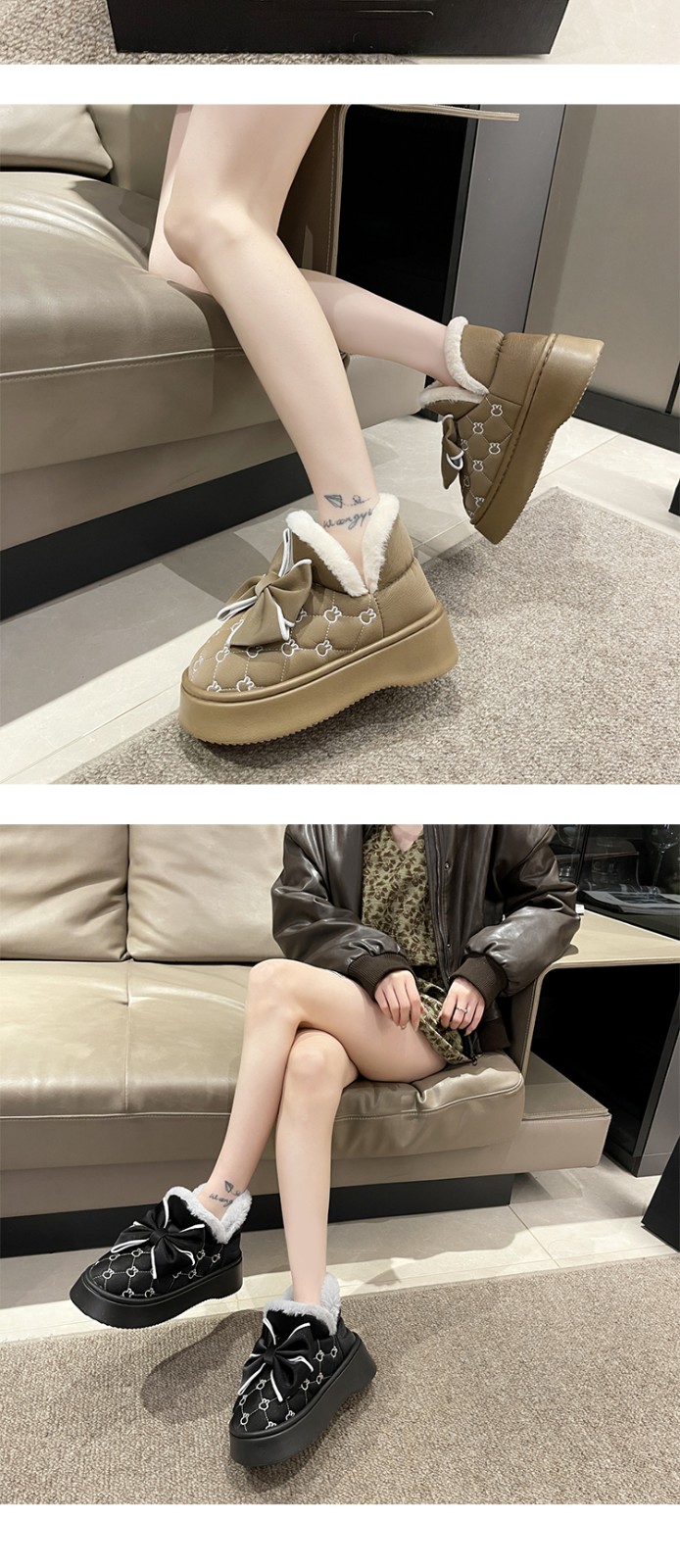 Stylish warm bow boots Winter thick-soled outdoor elegant women's fuzzy boots leather loafer shoes for men