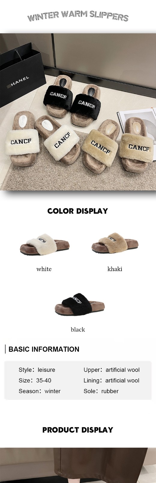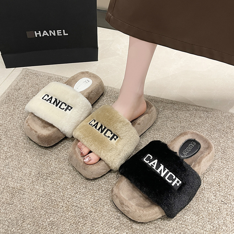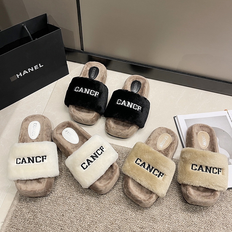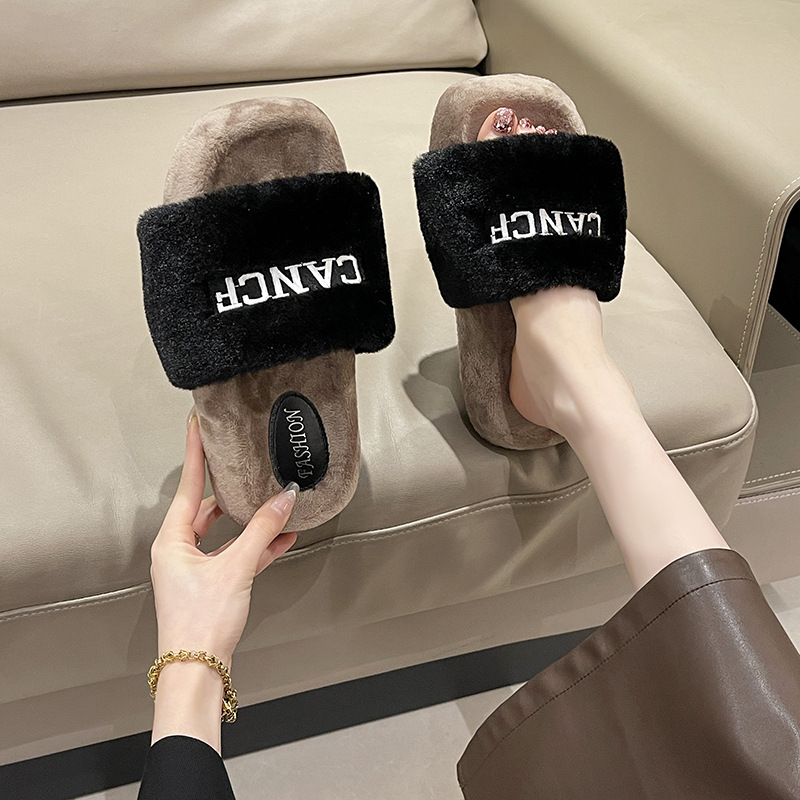 Women's thick sole increase fashion plush slippers 2023 casual elegant embroidered slippers cheap slipper men