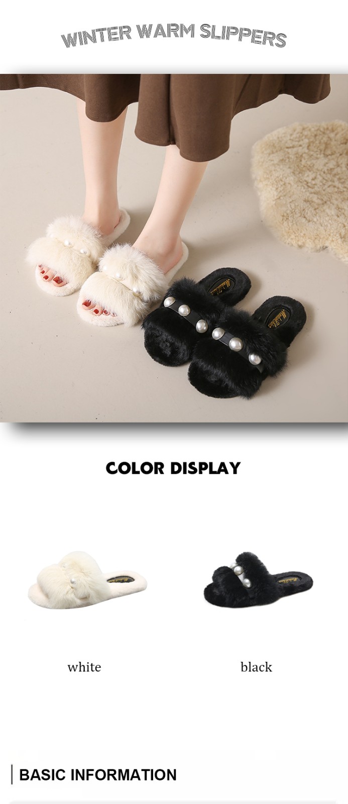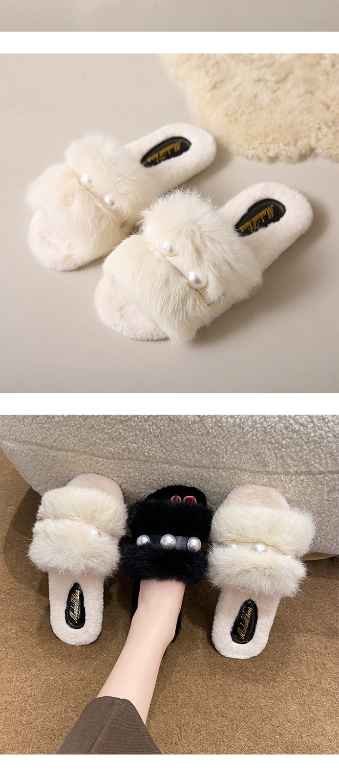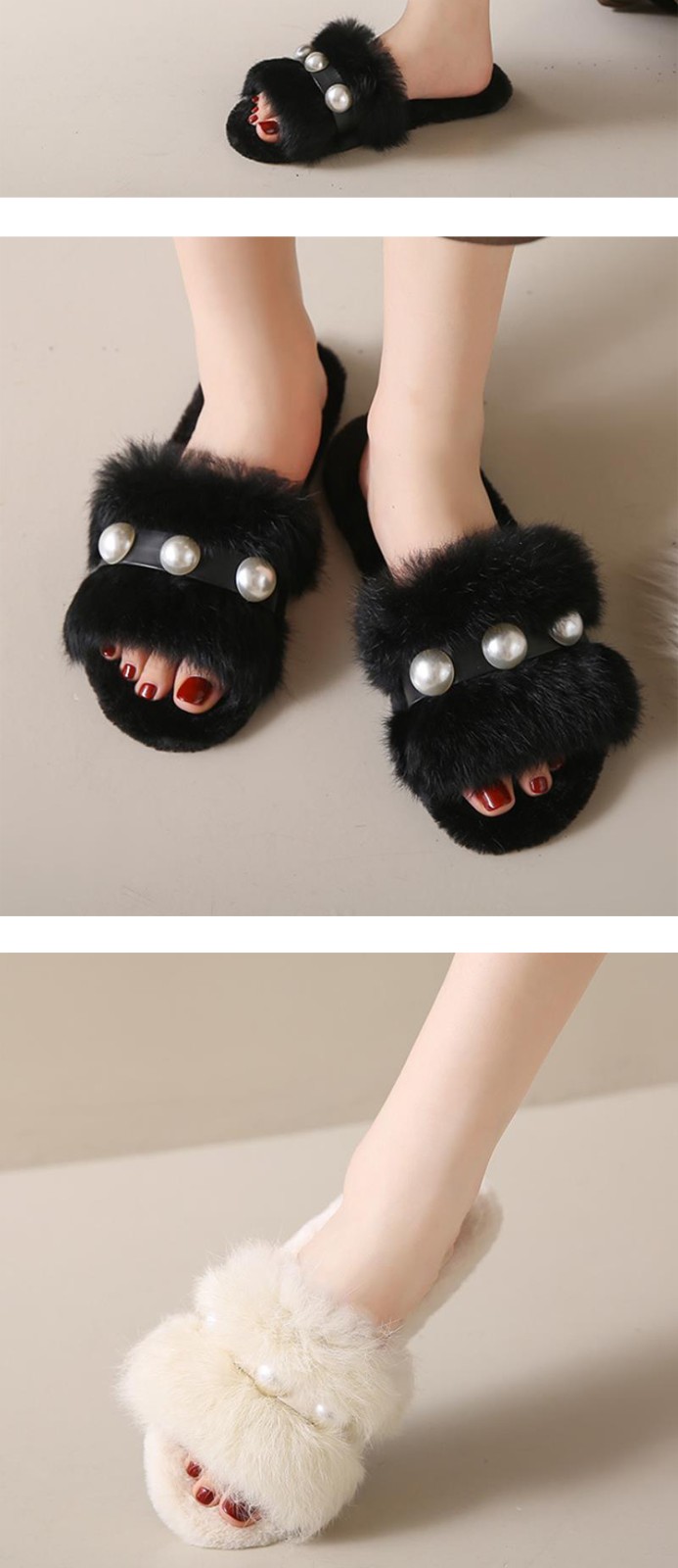 2023 hot selling Elegant ladies fashion fluffy indoor slippers Casual pearl solid flat slippers white shoes for men