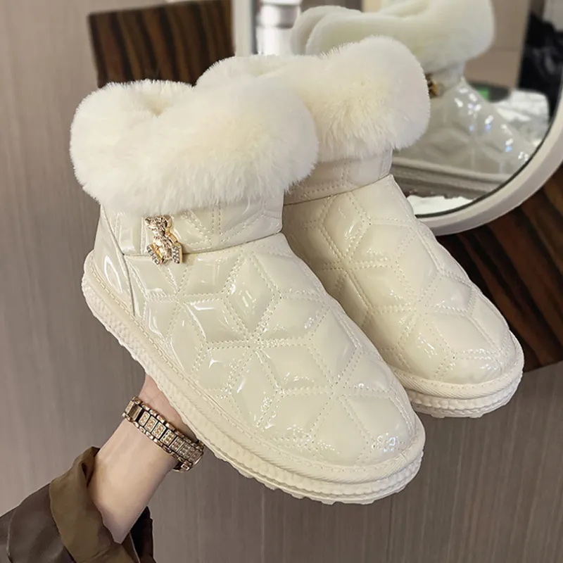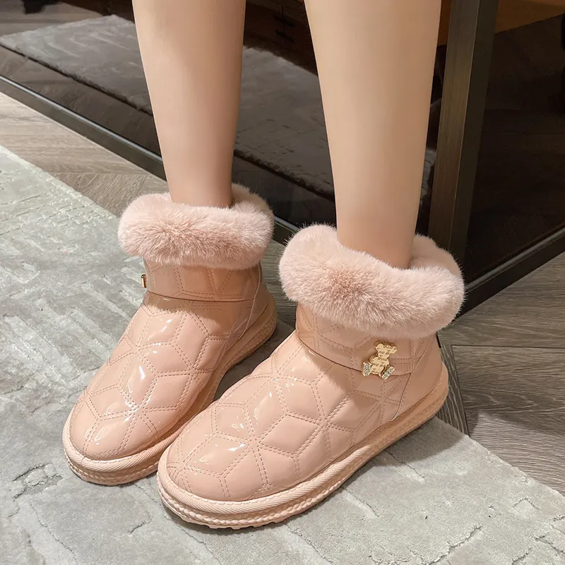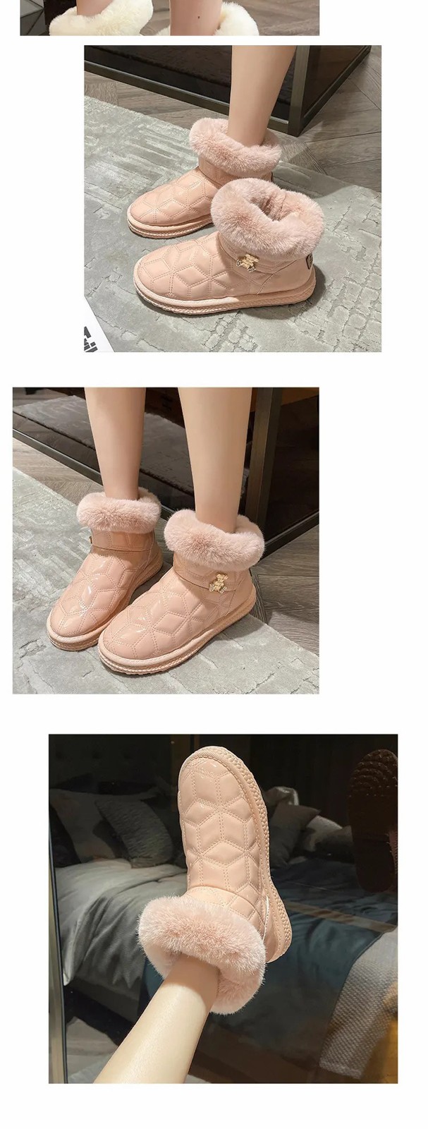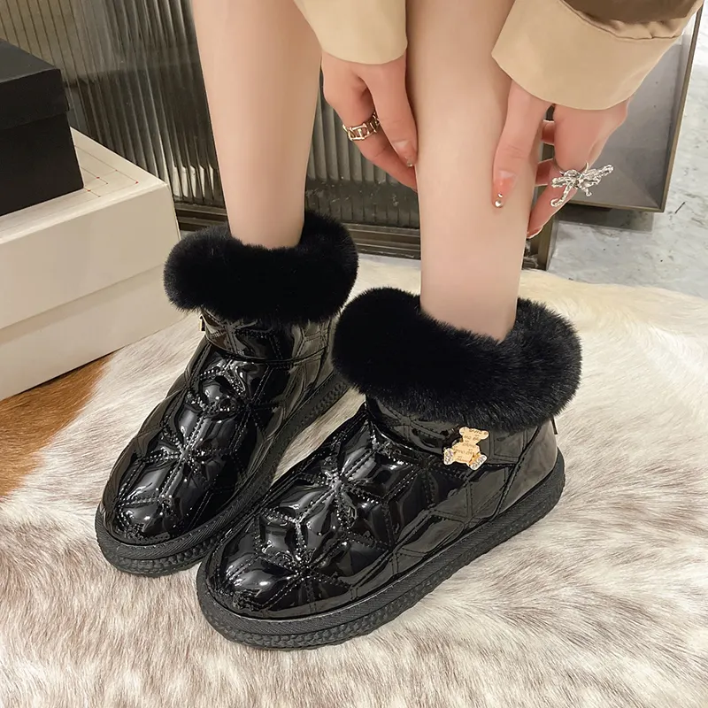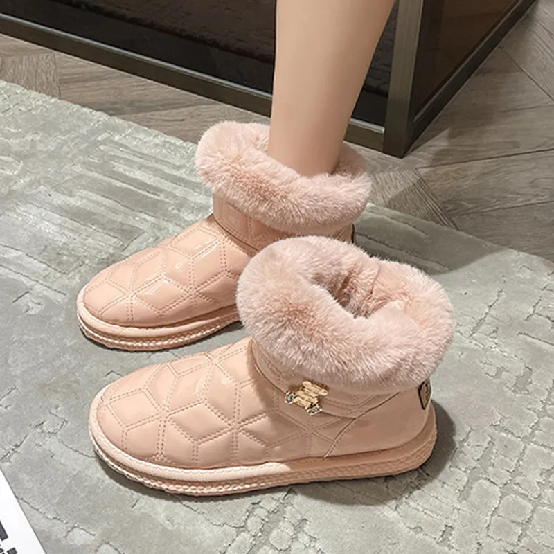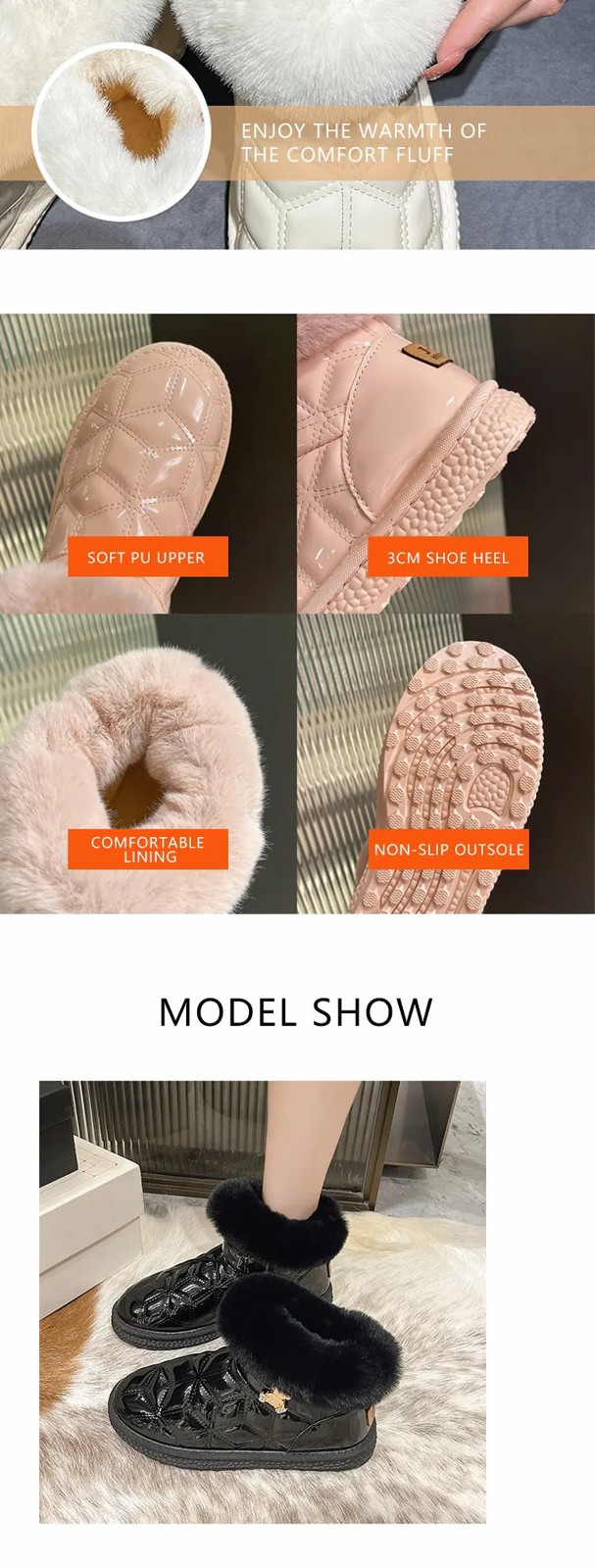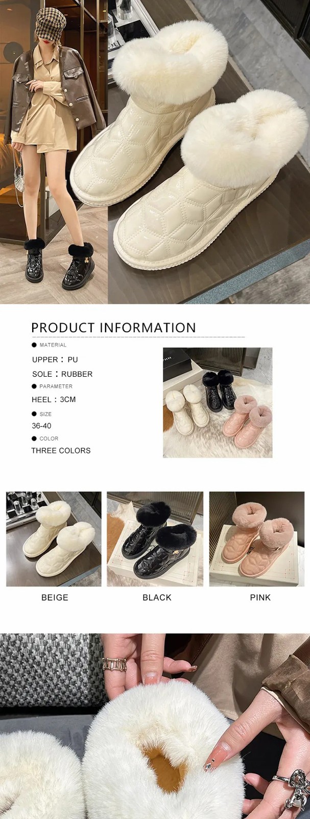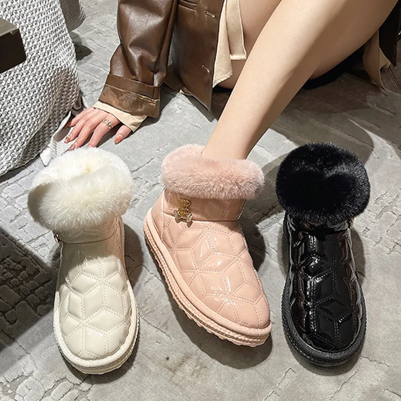 Winter female 2022 New Style fashion pu upper snow boots Thick keep Warm Comfortable Outdoor Soft Sole rubber shoes for women