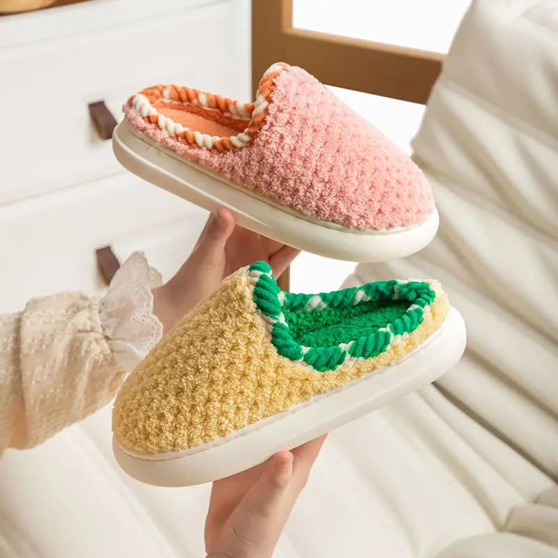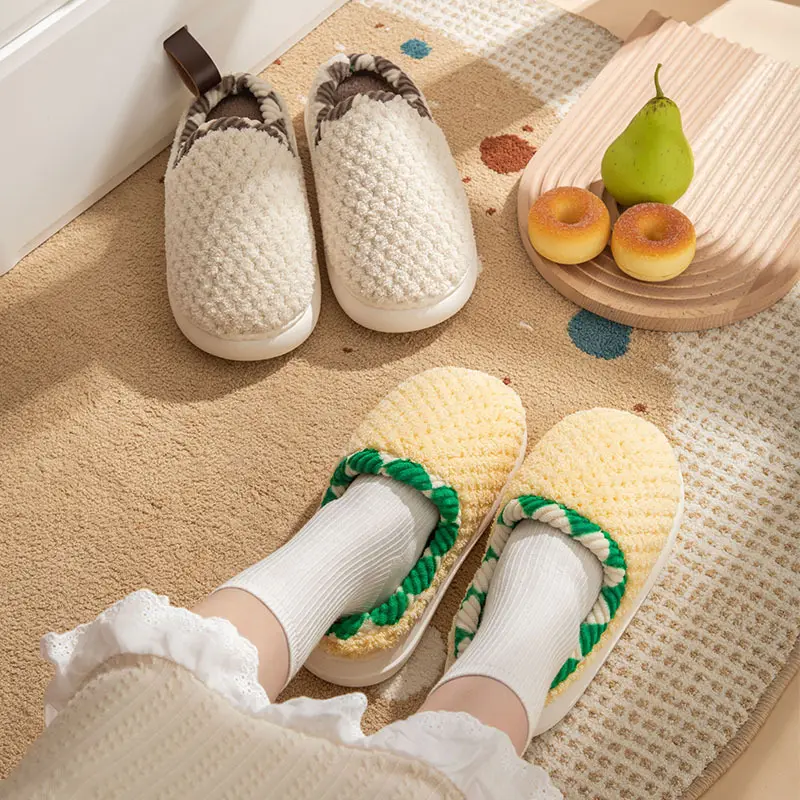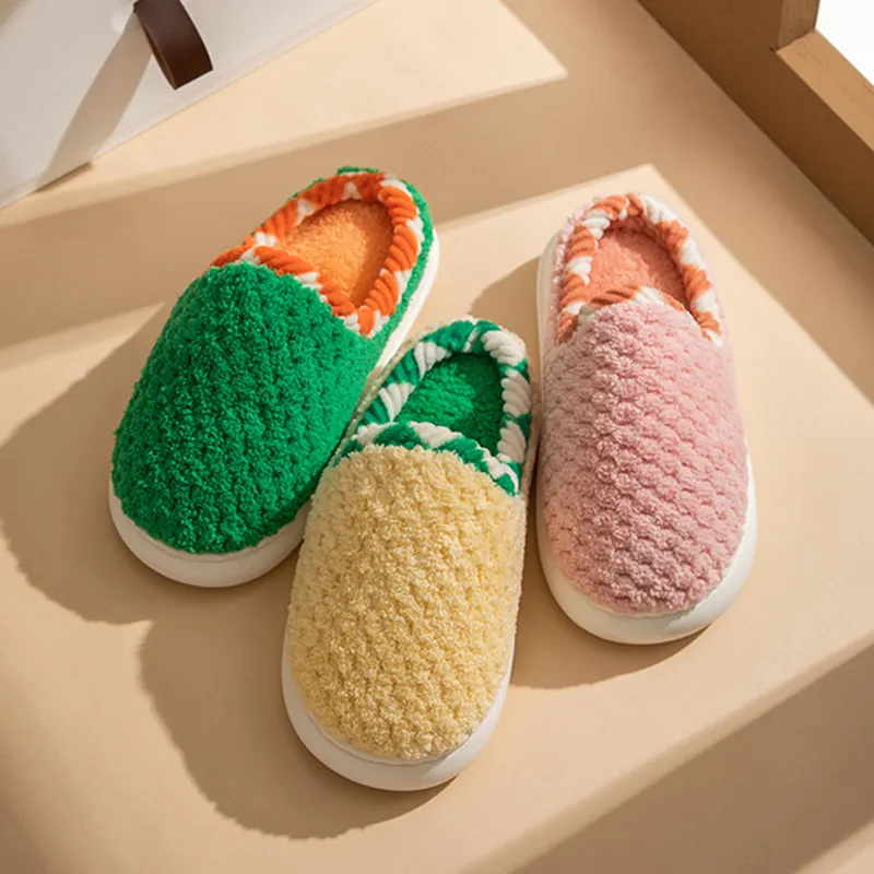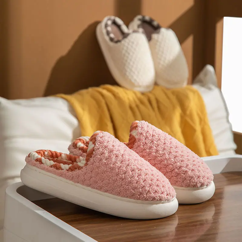 2022 Fall and Winter New simple Series plush warm Women slippers Indoor Fashion solid color Couple Home ladies flats shoes