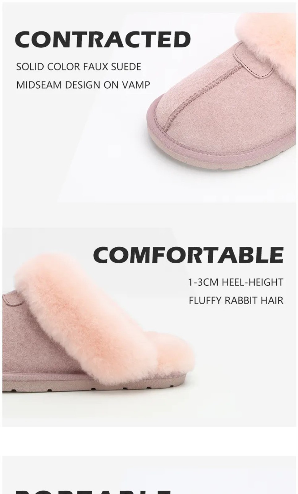 Fluffy Rabbit hair Home Slippers Women Comfort Furry Flat Female solid color Slippers ladies bedroom house shoes