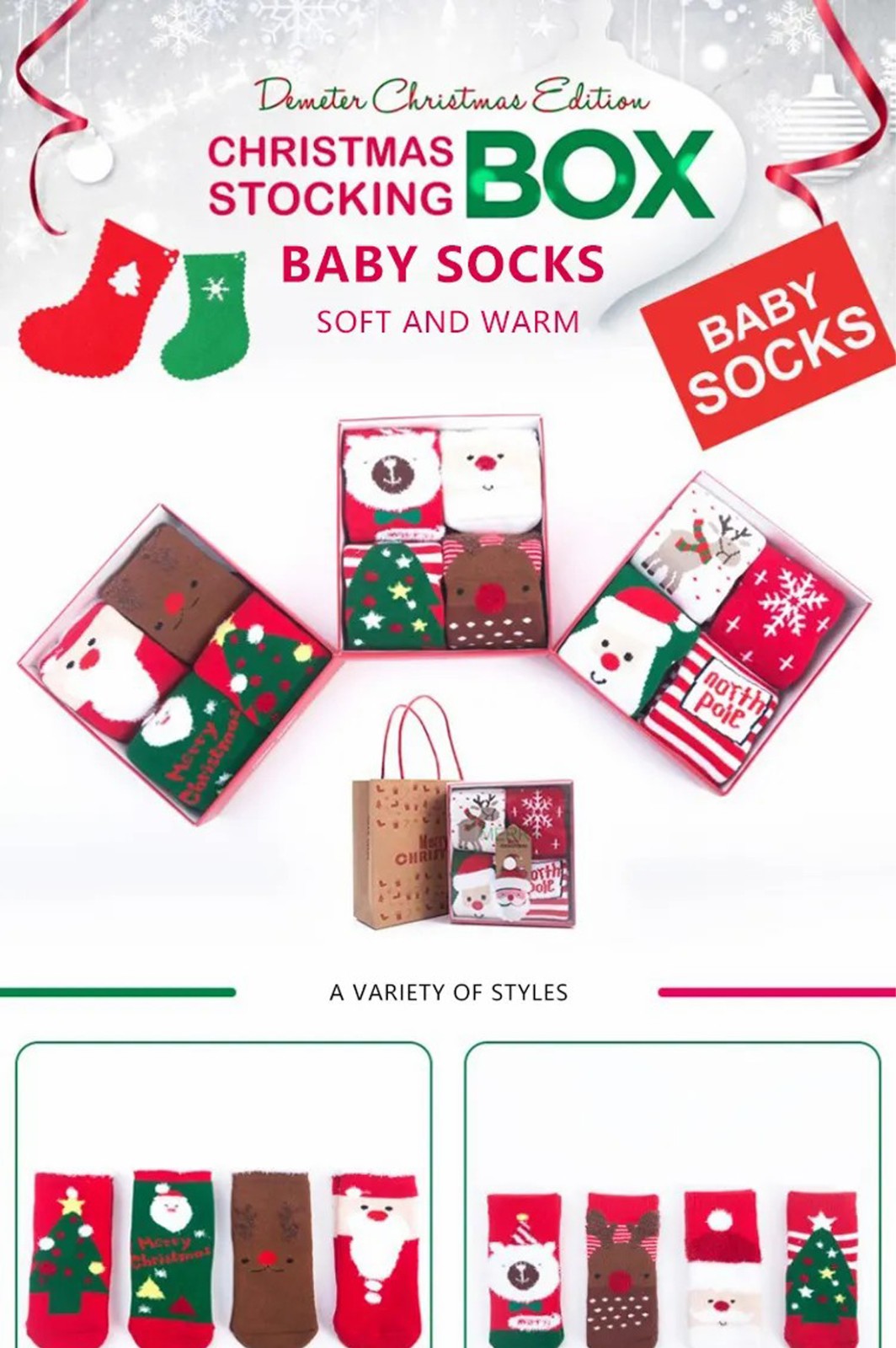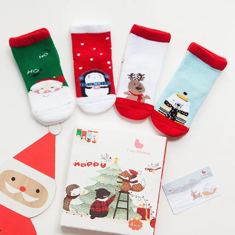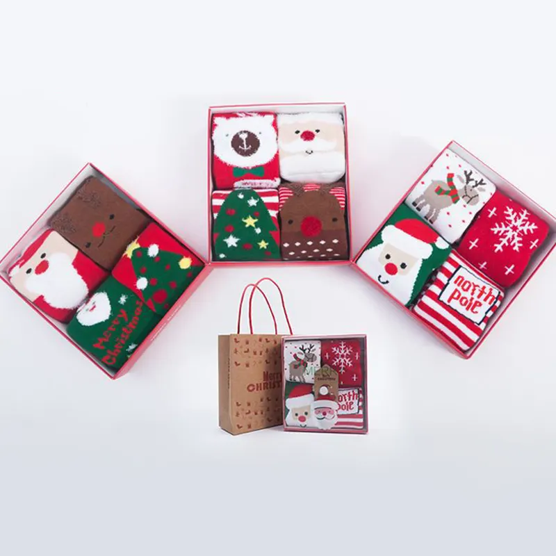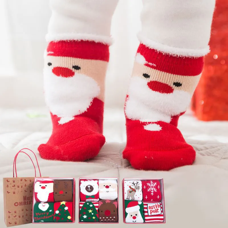 Boys and girls fashion comfortable warm gift box christmas socks wholesale thicken winter cute cartoon newborn baby socks